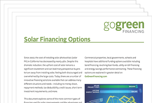 These printable resources have been designed to help California property owners learn more about their financing options and the ones available through Go Green Financing.
